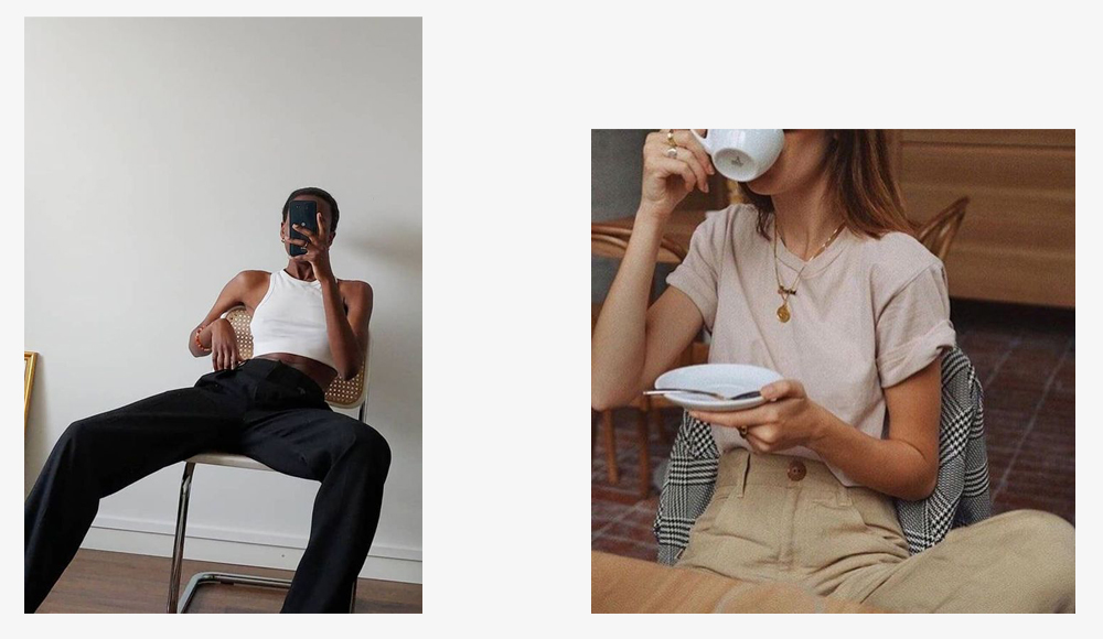 То есть выбираем хлопковые рубашки свободного кроя, шелковые блузы или топы, футболки из плотного хлопка, льна или вискозы.