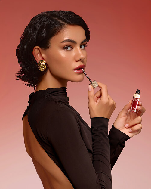 Представьте губы, окутанные мягким сиянием рубинового света: цвет, который говорит о спокойной уверенности и «вечернем» настроении, но при этом работает и в дневном макияже.