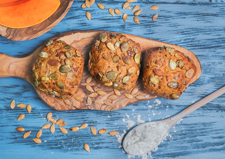 Выложите тесто в формы для кексов. Посыпьте каждую из них семенами тыквы. Выпекайте десерт в духовке около 30 минут, пока он не подрумянится. Перед тем, как доставать кексы из форм, остудите их.