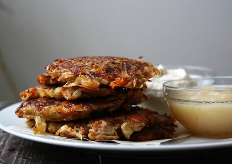 Оладьи из картофеля и моркови с кремом из кешью и яблочным пюре от Камерон Диаз
