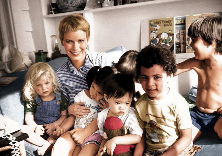 Миа Фэрроу не может не вызывать восхищения! Бывшая жена Фрэнка Синатры и любимая актриса Романа Полански и Люка Бессона не только до бесконечности талантлива. У Мии огромное сердце: в нем хватает любви на четверых родных и десятерых приемных детей. В таком составе семейные праздники точно проходят шумно и весело. У-удивление, В- восхищение, В- восторг! Став Послом доброй воли ЮНИСЕФ, Фэрроу активно занимается благотворительностью. В 2008 журнал Time назвал ее одной из влиятельнейших женщин мира. Заслуженно!